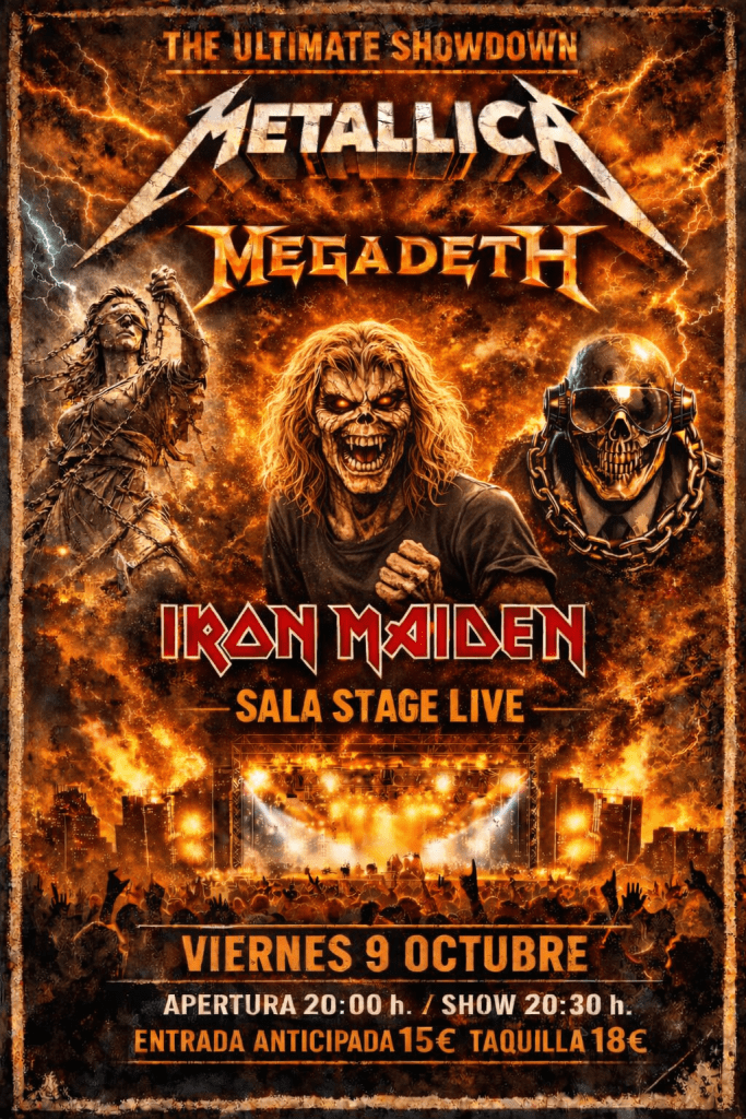 Fecha: 9 octubre, 2026 – Master of Extinction 20:30 – 21:30 (Metallica + Megadeth) – Santuario 21:50 – 23:00 (Iron Maiden)
