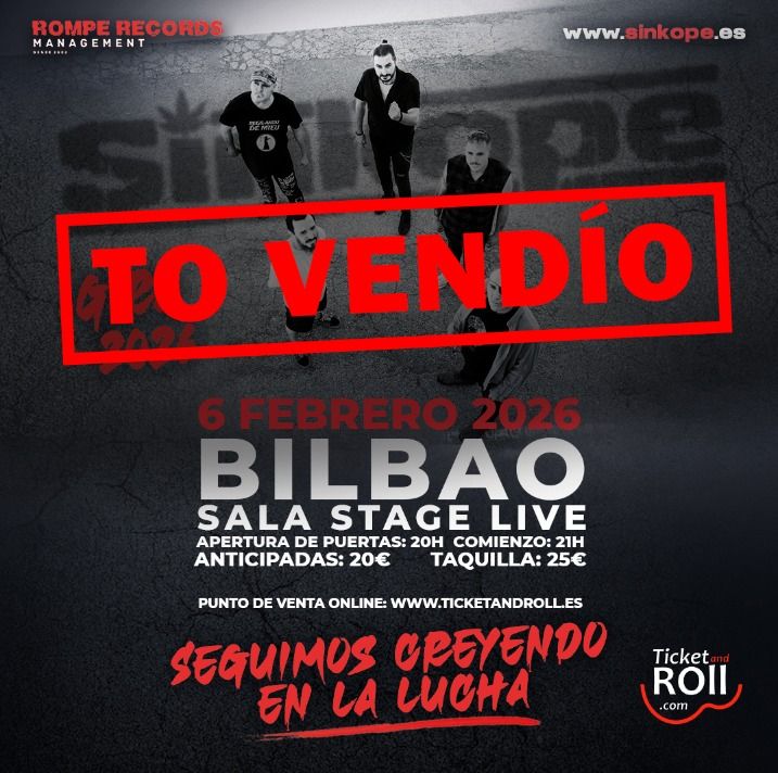 Fecha: 6 febrero, 2026 Hora: Ap. Puertas: 21:00 Entradas: Anticipada 20,8€ Link:: https://ticketandroll.com/evento/sinkope-en-sala-stage-live-bilbao Después de un exitoso 2025 colgando el TO VENDIO en la gran mayoría de los conciertos de presentación de su último disco por distintas salas y ciudades del estado, con el colofón de la memorable noche del 1 de noviembre en La Riviera de Madrid, la banda extremeña Sínkope, anuncia las primeras fechas y ciudades […]