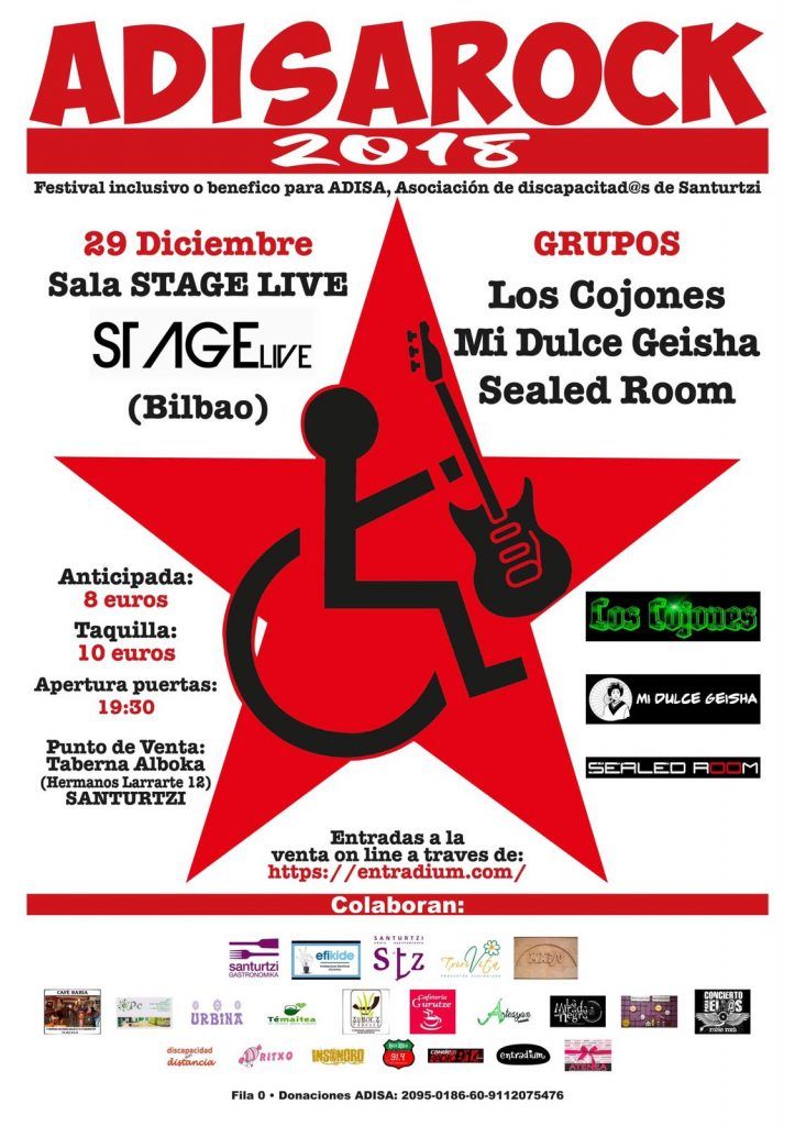 Festival inclusivo o benéfico para A.DI.SA (asociación de discapacitad@s de Santurtzi) con «Los Cojones, Mi Dulce Geisha y Sealed Room».