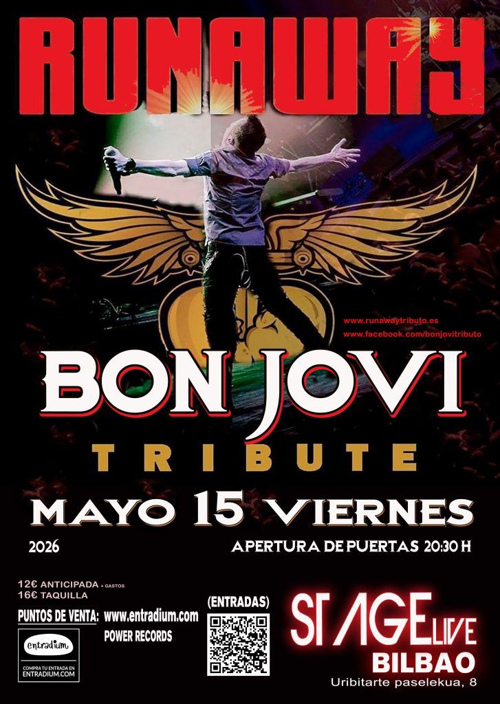 Fecha: 15 mayo, 2026 Hora: APERTURA 20:30 INICIO 21:00 Runaway – Bon Jovi Tribute, una de las bandas tributo más aclamadas, hará un repaso de todos los Hits de la banda de New Jersey. Dos horas de Bon Jovi sin tregua.